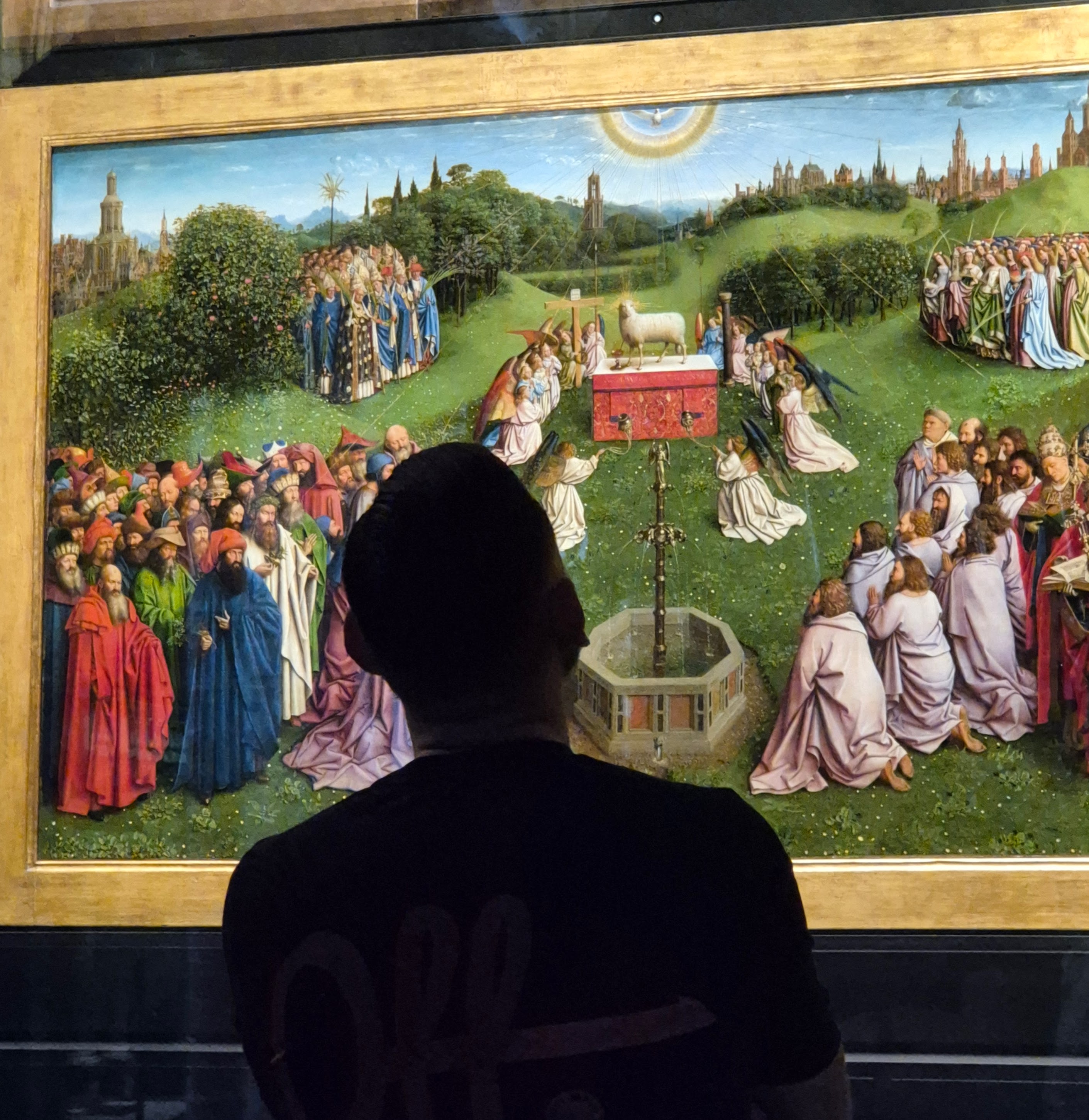 הגענו לקתדרלת בָּאווֹ הקדוש לסיור בעקבות תמונת המזבח של גנט. הכניסה לחלקה העיקרי של הקתדרלה הוא ללא תשלום ויש הרבה מה לראות בה (וזה ימתין ליום אחר). הגענו למרכז המבקרים דרכו אפשר להיכנס בתשלום לאיזור המציג את תמונת המזבח. אנחנו בחרנו גם לערוך סיור ב-AR (מציאות רבודה). הלבישו עלינו את הציוד המתאים וכעת חצים וירטואליים הובילו אותנו במרתף הקתדרלה מתצוגה לתצוגה. זו חוויה שעד אותו הרגע לא חוויתי, למרות שטכנולוגיית AR כבר קיימת כמה שנים. התוצאה היא סיור מהפנט ביופיו, שנמשך בין 40 דקות לשעה, מספר את ההיסטוריה של היצירה ועוטף אותה בסיפורן של גנט ושל אירופה.